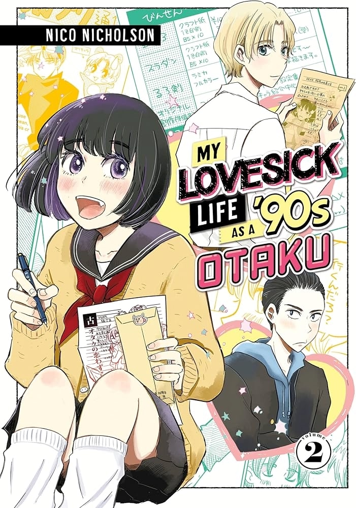 Дзёсэй-манга Нико Николсон «My lovesick life as a ’90s otaku» (японское название — «Inishie Otaku no Koi wa zurai», дословно – «Любовь отаку прошлого так жестока») рассматривает историю отаку-культуры 90-х, сравнивая её с отношением к аниме в наше время, когда это увлечение уже стало мейнстримом. Главная героиня (которой за сорок), глядя на свою дочь-старшеклассницу, размышляет о том, как сейчас изменилось отношение к отаку в обществе. Её дочь – красивая и милая девушка, одевается симпатично и при этом украшает одежду и рюкзак значками и мерчем с любимым персонажем из аниме. Она спокойно обсуждает комикет со знакомой девочкой-гяру и совершенно не стесняется своего хобби. Мать же начинает вспоминать, что подобное было совершенно невозможно в то время, когда она сама училась в школе. Увлечение аниме не было таким обыденным.